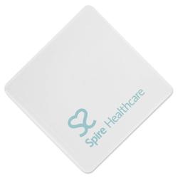 100mm diameter round or 100 x 100mm square white acrylic coaster. Printed one colour.